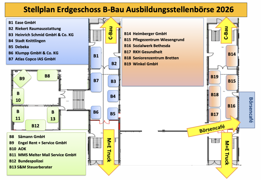Interessierte Jugendliche und Eltern können sich unverbindlich und kostenfrei über Praktikums- und Ausbildungsplätze, Berufsbilder, weiterführende Schulen und die ausbildenden Betriebe informieren und beraten lassen. Wie schon die letzten Jahre bieten verschiedene Betriebe wieder Vorträge zum Thema Berufswahl an. Unter anderem werden verschiedene Ausbildungsberufe vorgestellt bzw. Bewerbertrainings durchgeführt. Für das leibliche Wohl wird im Börsencafé durch die Klassen 7a und 7d gesorgt.